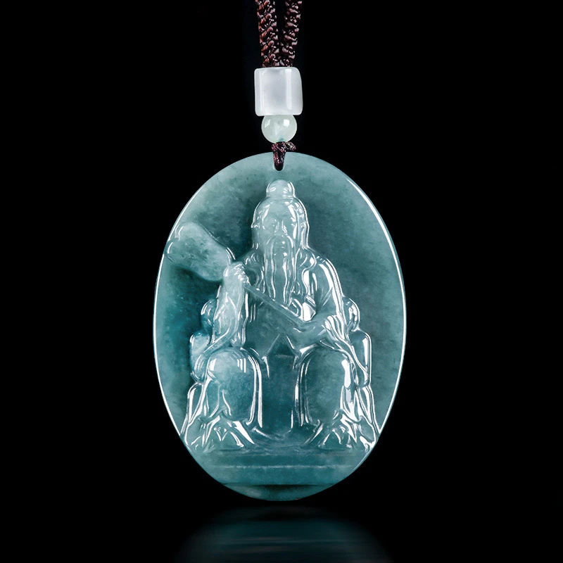 天然A货翡翠蓝水道家物件护身符吊坠道德天尊玉石吊坠挂件玉佩送